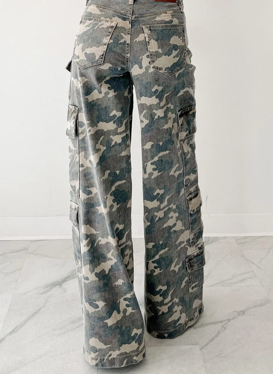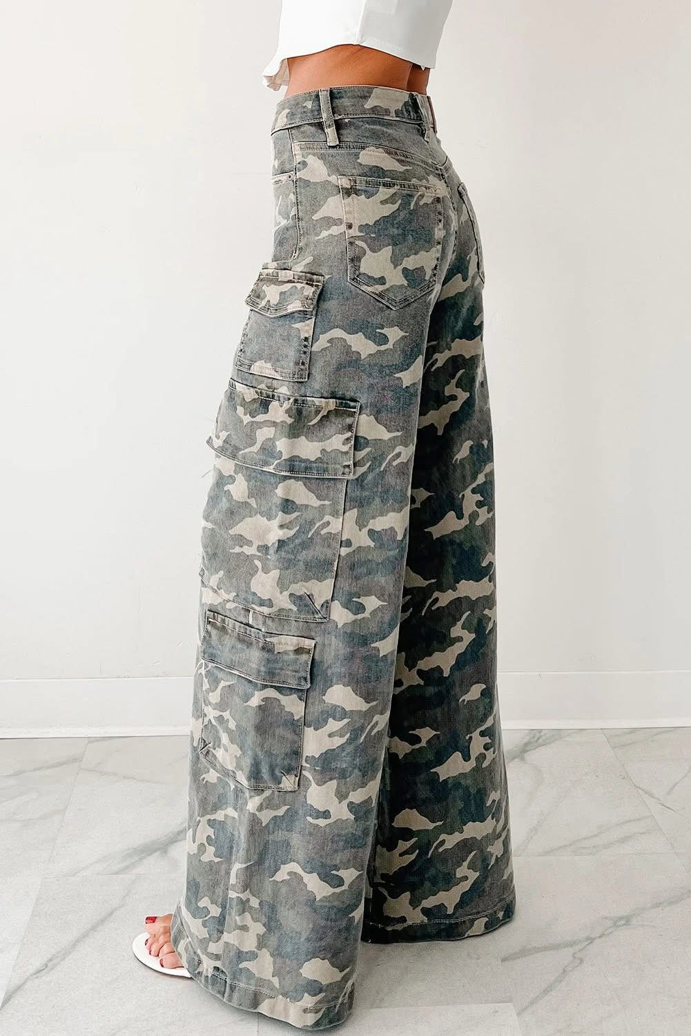 Unleash your inner fashion rebel with INCOGNITO's Green Camo Denim Cargo Wide Leg Pants. Featuring a bold camo print and comfortable wide leg design, these pants are perfect for making a statement while staying comfortable. Wear them to stand out in the crowd or add a touch of edge to your everyday look.